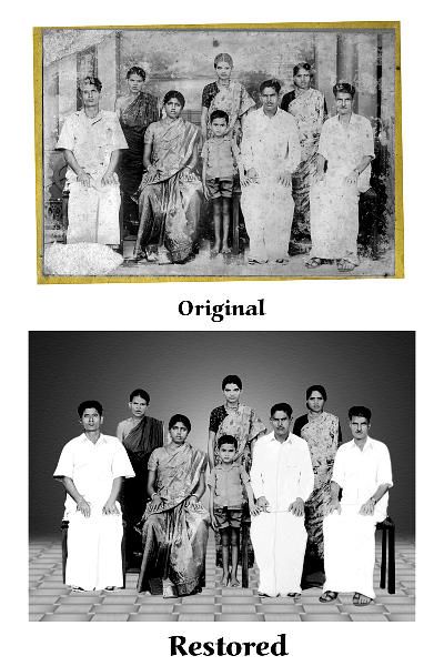 Our photo editing & retouching artists provides best profession Photo Restoration Service to clients. We help you to recover precious memories and preserve them for long lasting. Our team is skilled for photo restoration and enlargement, restoration of old and damaged photo, converting b/w photo to color, adding or removing people/object. We also specialize in Recreating / repairing missing parts of photo.